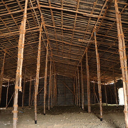 • Skeleton structure: Wooden poles, bamboos, coir string